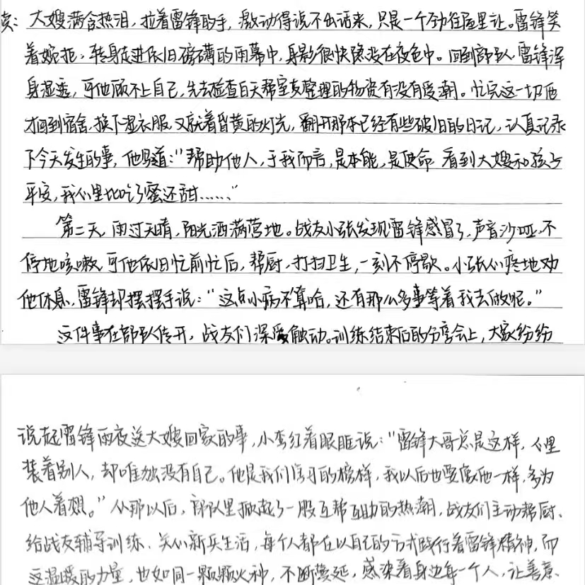 “锋墨流芳·日记新章”雷锋日记续写活动开展得如火如荼。同学们以日记记录对雷锋精神的感悟与实践,无论是为同学答疑,还是投身社区志愿服务,都体现雷锋精神在青年学子中的生动实践。一篇篇饱含真情的日记,记录着同学们的成长,成为校园文化亮点。借助新媒体矩阵传播,精选作品形成“一人记录、百人共鸣、千人践行”的辐射效果,有效引导青年将雷锋精神内化为价值坐标,为文明校园建设注入精神动力 。